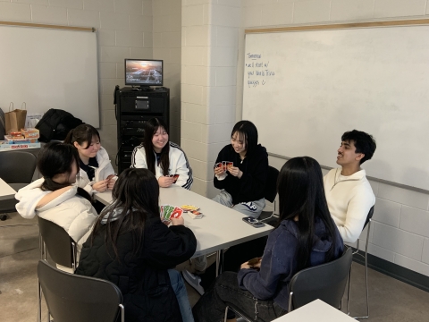 語学研修授業2日目。教科書は北海高校のため作られたものです。午後から「emoji(絵文字)」を使ったワークショップ。その後、ブロック大学の生徒と他のESLの生徒とカードゲームを使ったアイスブレイクの時間がありました。