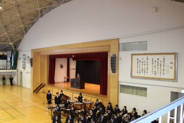 また、吹奏楽曲の伴奏とともに校歌練習も行われました。