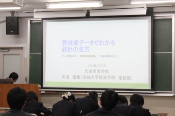 最初の一歩として、成城大学経済学部の矢島猶雅先生による「野球部データでわかる統計の見方」という講義をしていただき、比較データの作り方や読み取り方、野球部からの統計データを分析…というお話しをしていただきました。